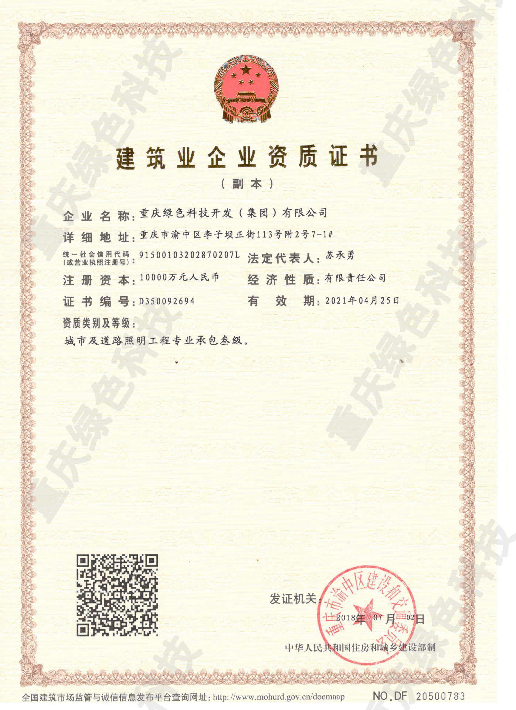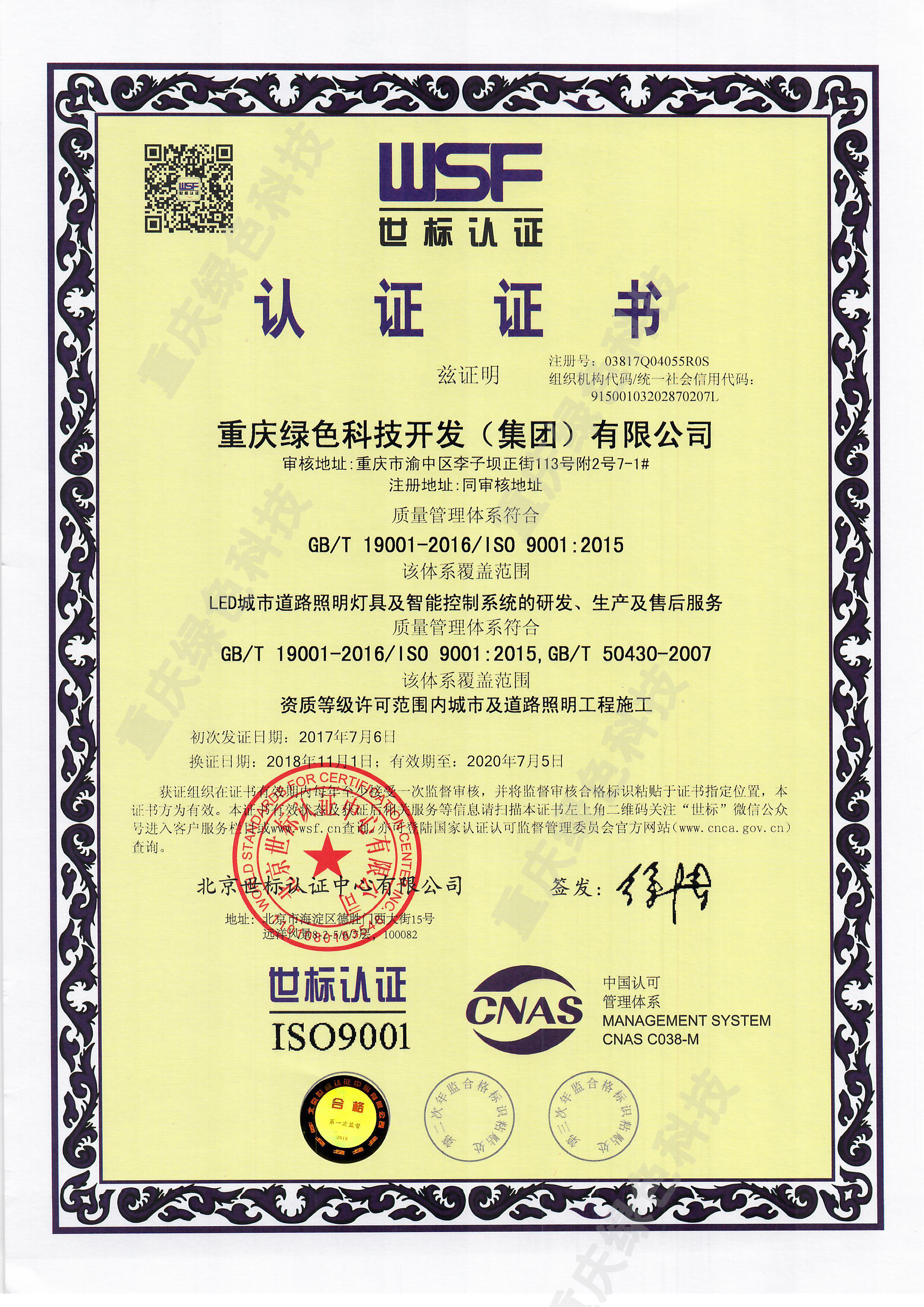 重慶綠色科技開發(集團)有限公司是國家高新技術企業、重慶市LED智能控制技術工程研究中心、重慶市中小企業技術研發中心、重慶市高成長性科技企業。擁有一支專業的多色溫LED智慧照明科研團隊,獲得國家發明等各類自主知識產權專利100余項。公司是以物聯網全光譜多色溫LED智慧路燈及“智慧城市”城市照明夜景燈飾聯動三級管理共享平臺為主要研發方向的現代科技型企業,經營銷售物聯網全光譜多色溫LED智慧路燈系列照明產品和教室照明護眼燈,推廣合同能源管理(EMC)照明節能改造項目、節能減排技術以及節能項目設計、融資、改造,咨詢服務、銷售、工程實施和技術推廣。