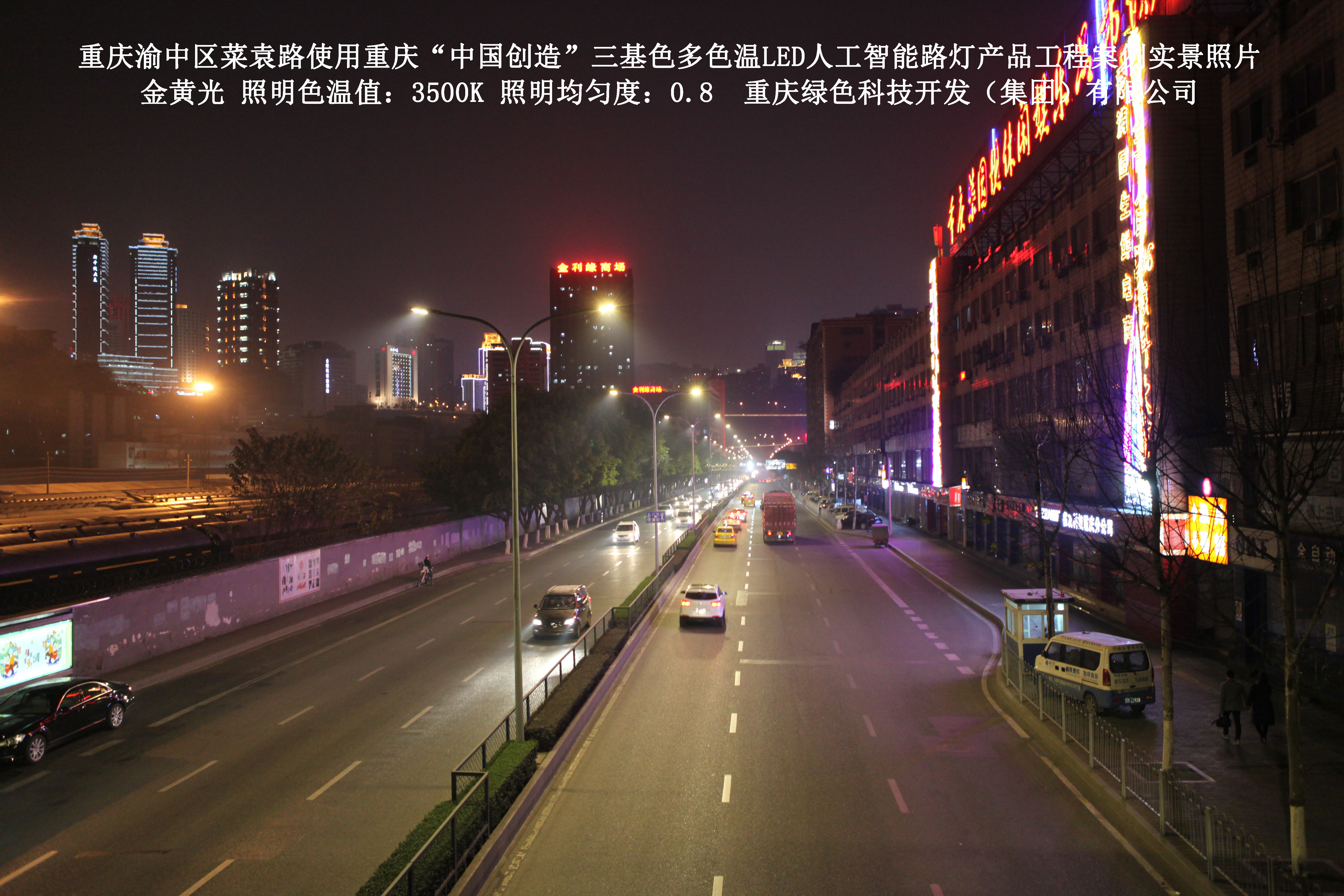 2013年10月,重慶市城市照明管理局使用了我司研發制造的重慶“中國創造”三基色多色溫LED人工智能路燈,對渝中區菜袁路實施了綠色照明科技節能改造工程,該工程已全面竣工。工程實施后,極大地提高了城市照明清晰度、燈光均勻度、舒適度。通過智能終端實現單燈感知、線纜防盜報警,與原高壓鈉燈相比,節能率60%以上,有效解決了關閉控制回路或間隔關燈方式造成的照明暗區,確保行人和車輛通行的安全,實現城市路燈照明系統的智能化管理,推進了智慧城市建設。