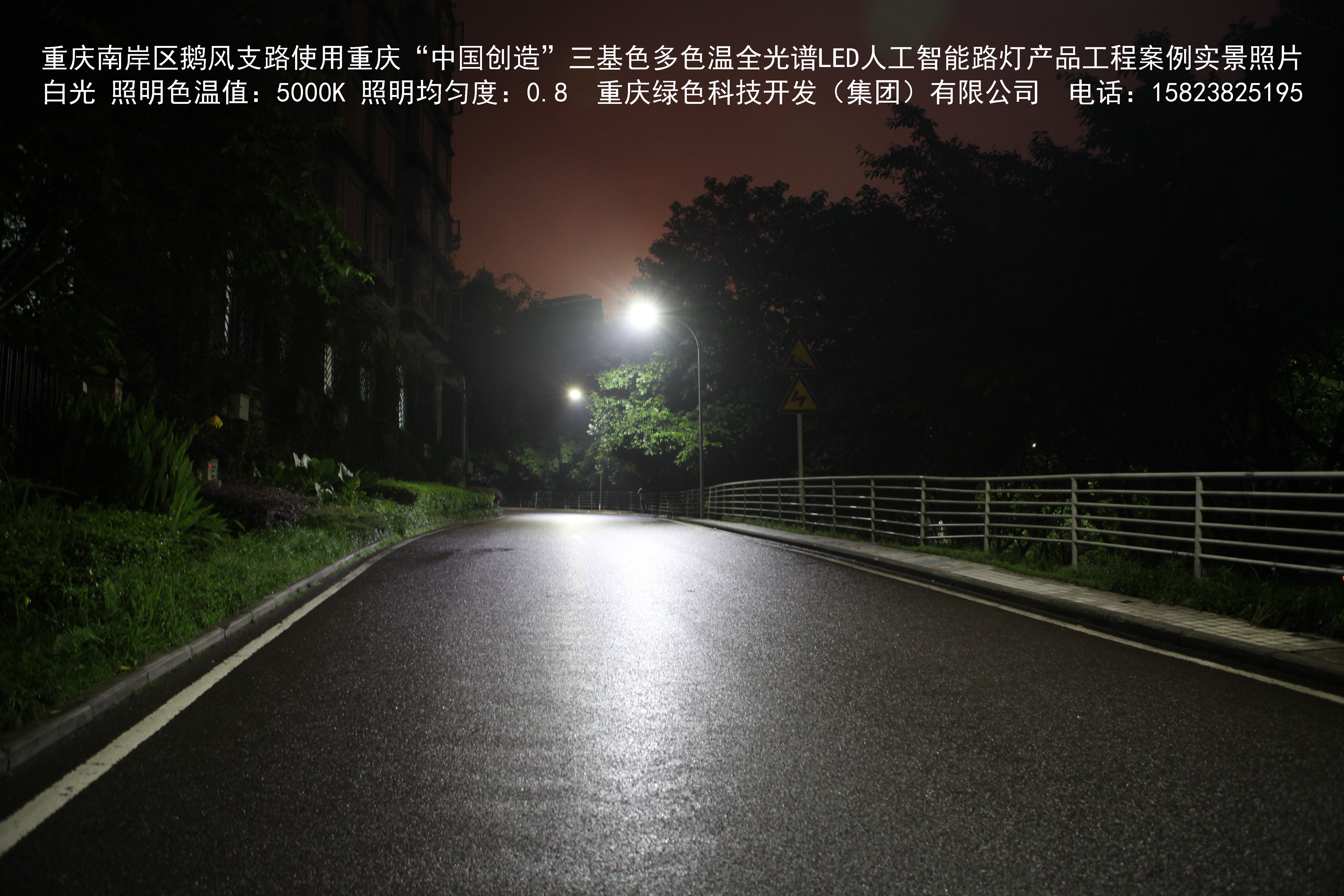 重慶市南岸區鵝風支路使用我司研造的重慶“中國創造”三基色多色溫全光譜LED人工智能路燈產品工程案例