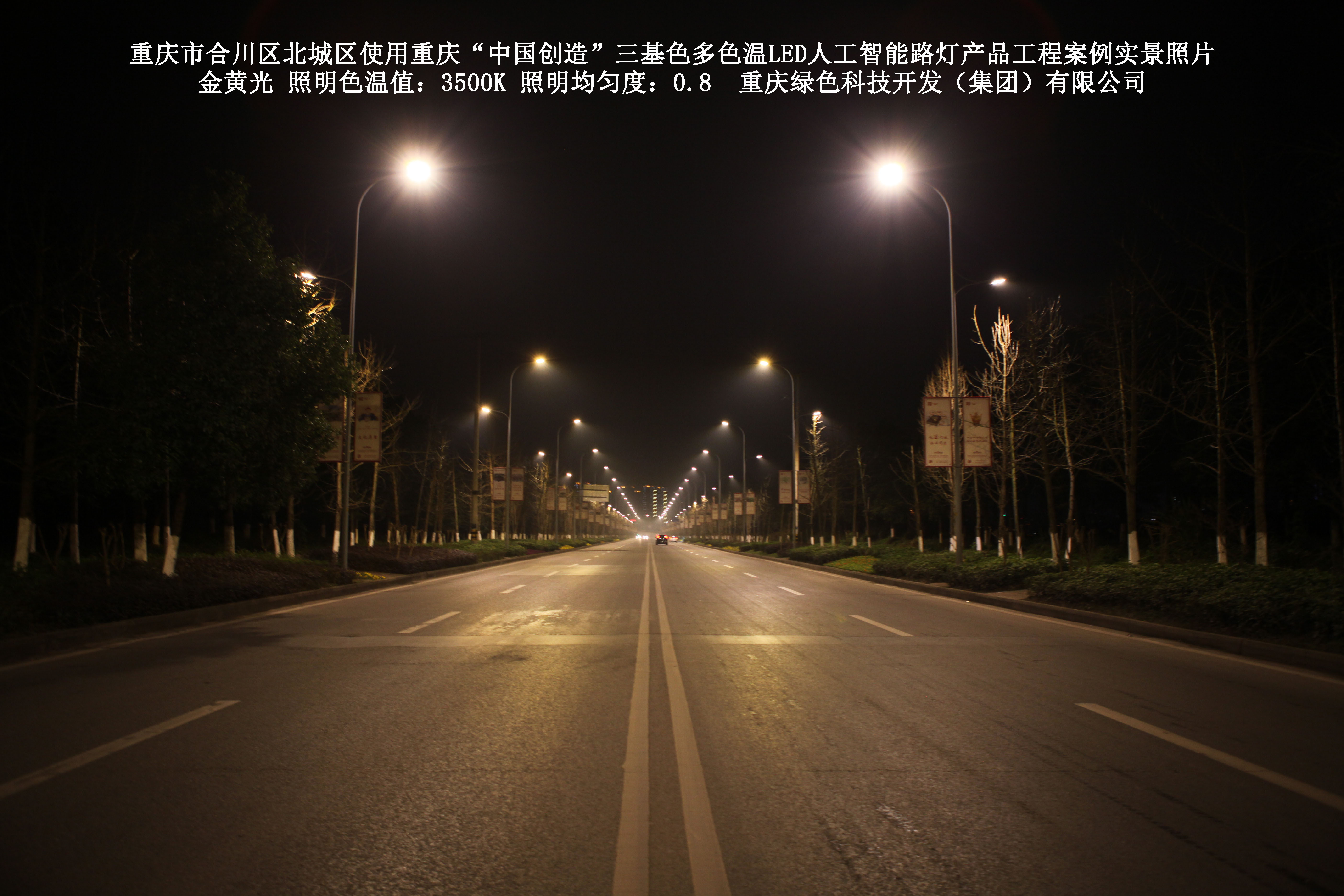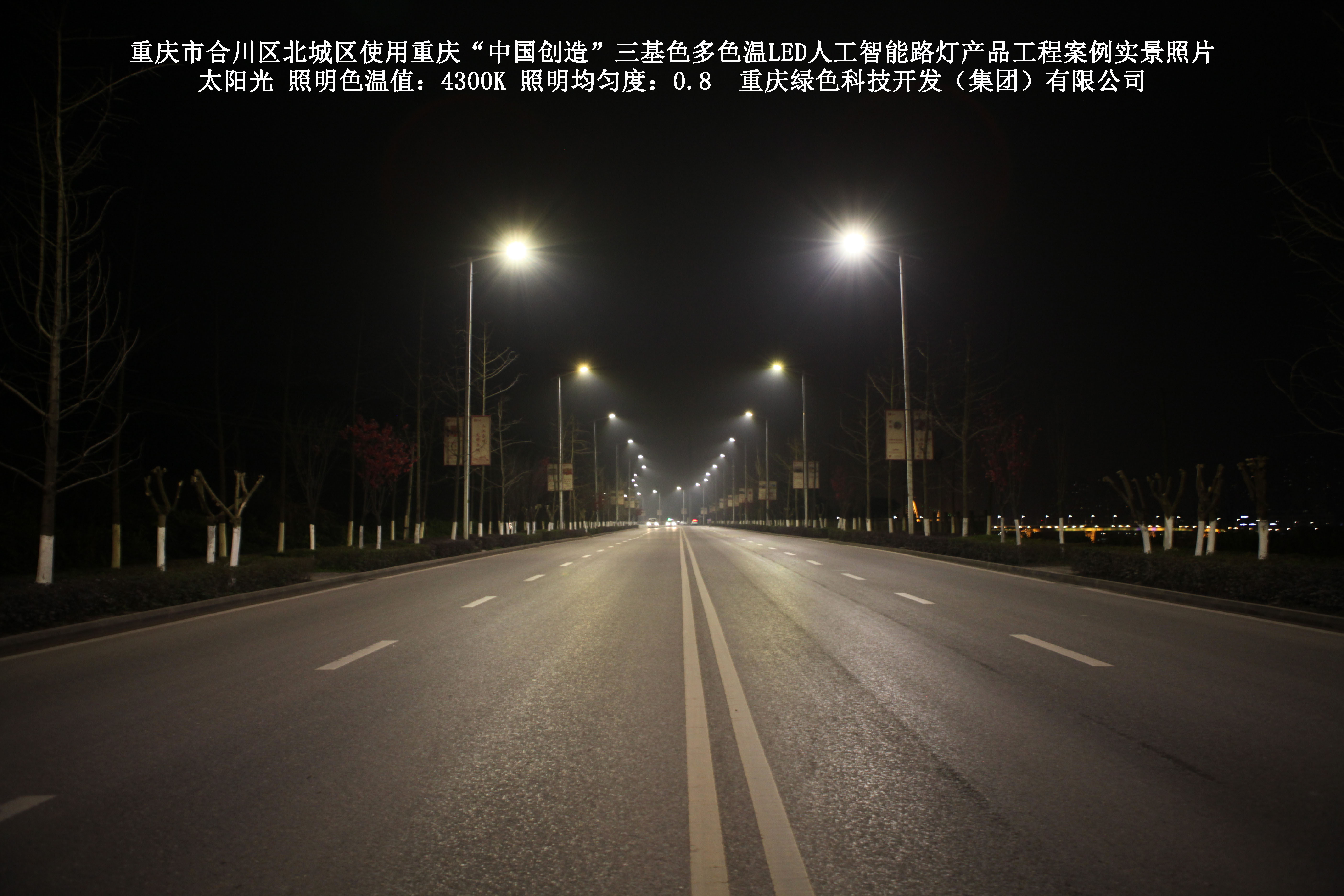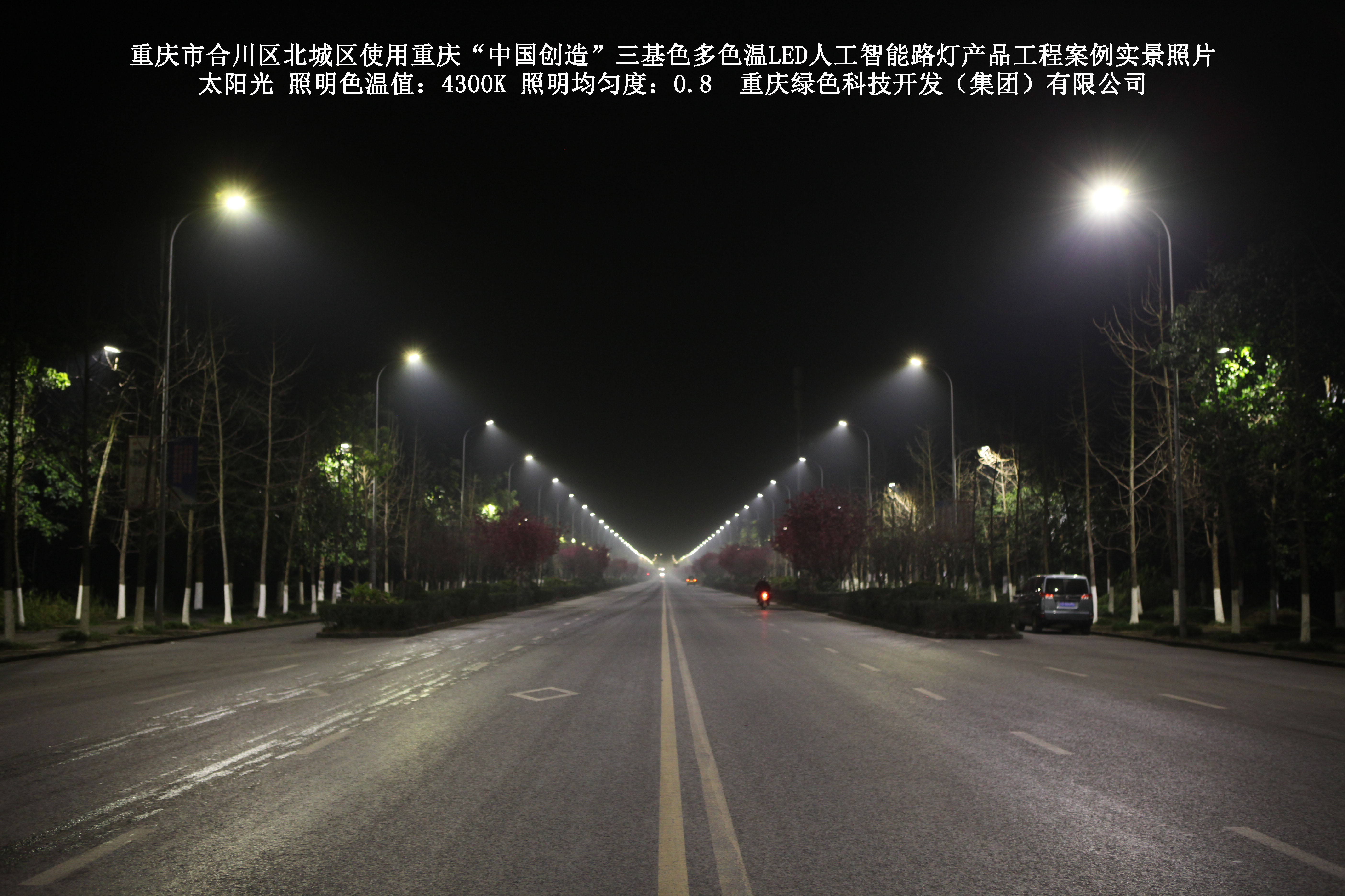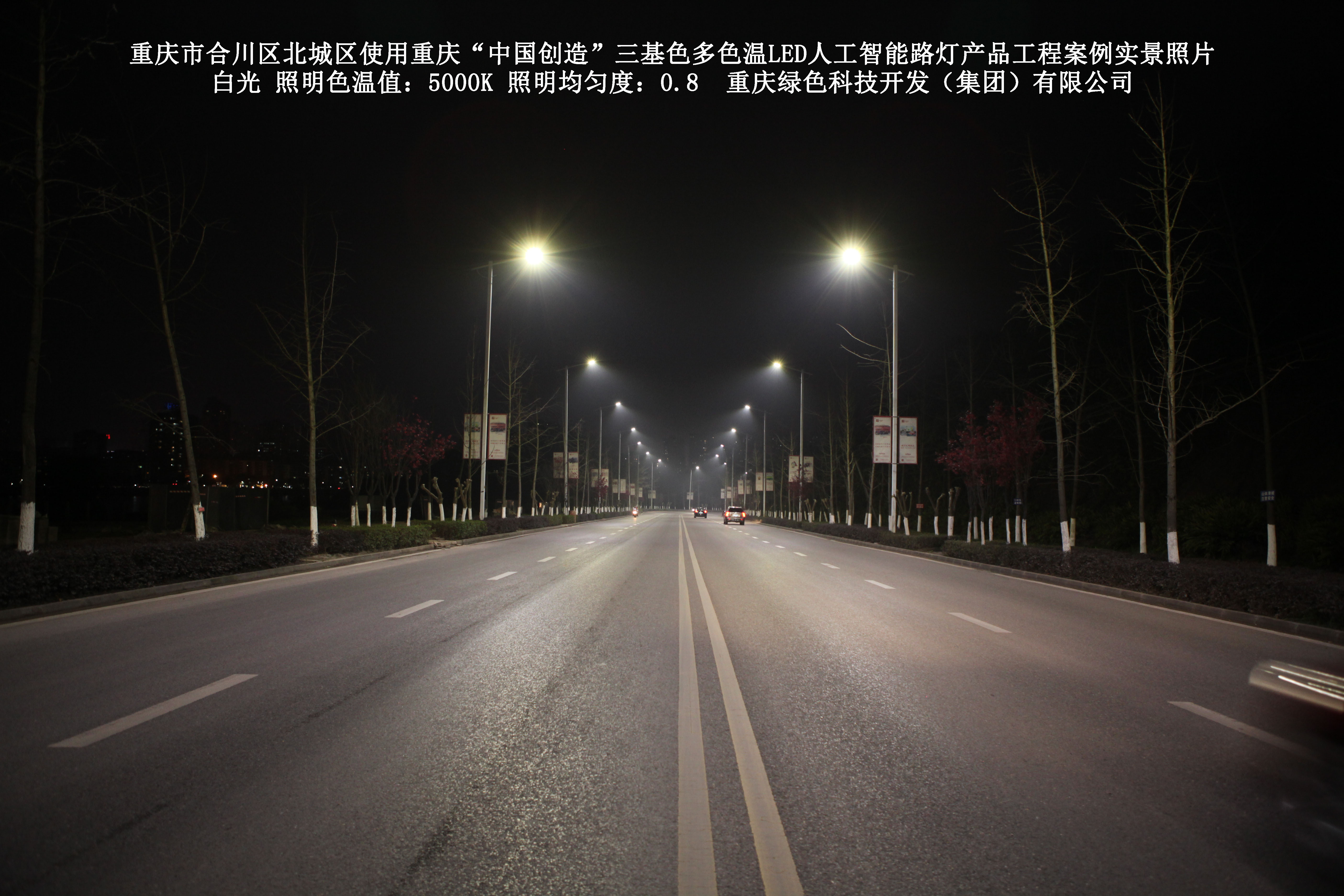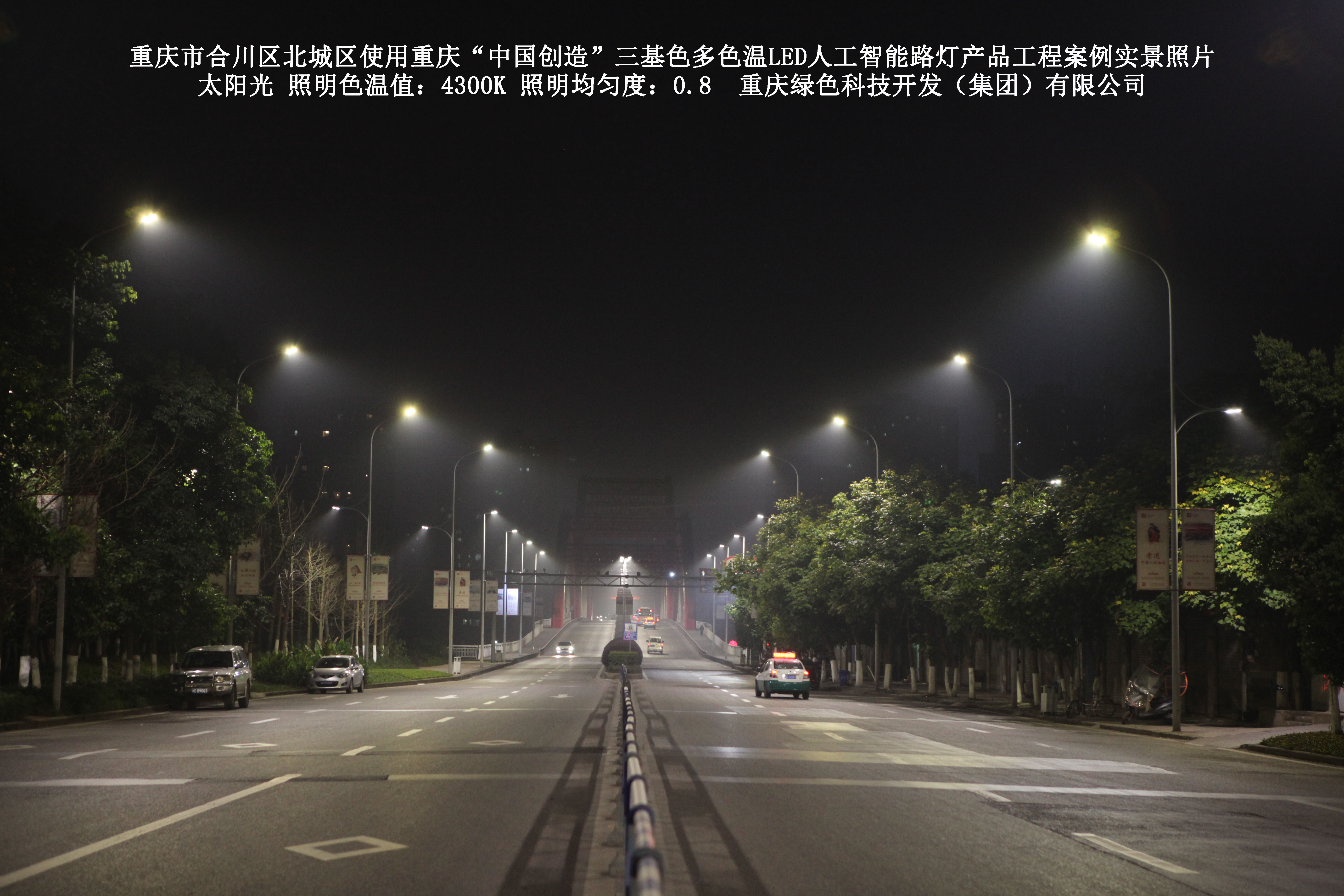 2019年1月,重慶市合川區城市管理局使用了我司研發制造的重慶“中國創造”三基色多色溫LED人工智能路燈5144盞,對合川區北城區實施了綠色照明科技節能改造工程,該工程已全面竣工。工程實施后,極大地提高了合川區北城區城市照明清晰度、燈光均勻度、舒適度。通過智能終端實現單燈感知、線纜防盜報警,與原高壓鈉燈相比,節能率60%以上,有效解決了關閉控制回路或間隔關燈方式造成的照明暗區,確保行人和車輛通行的安全,實現城市路燈照明系統的智能化管理,推進了智慧城市建設。